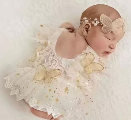 Süsser Body für Neugeborene Prinzessinnen mit Tutu-Röckchen, Haarband inklusive.