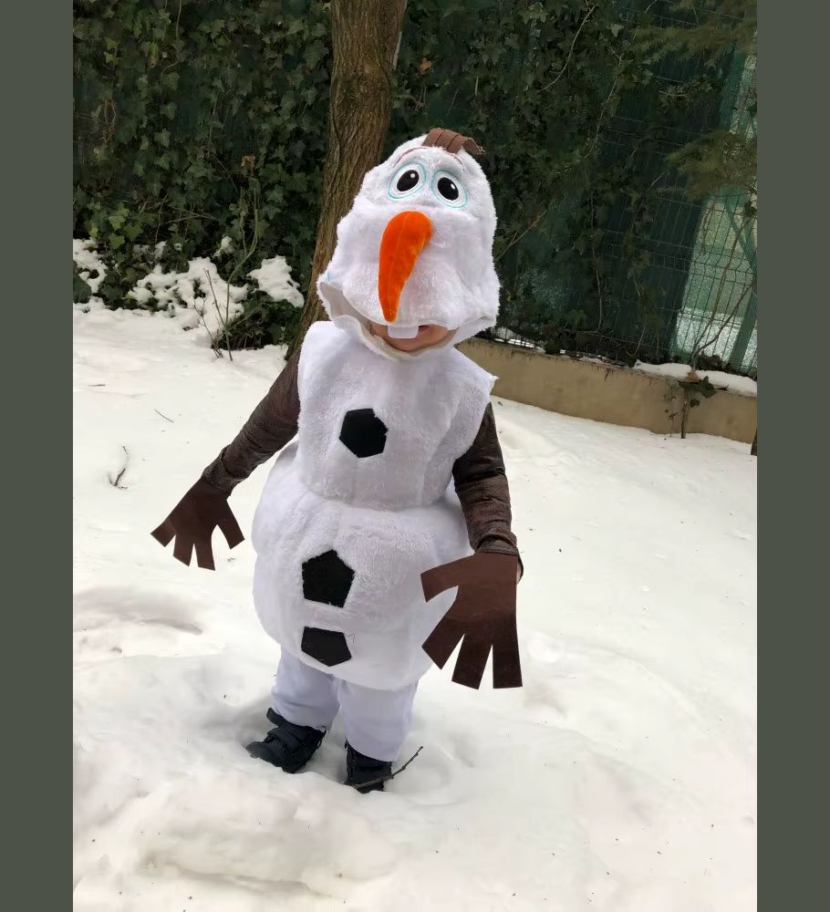 Herzig: Flauschiges Schneemann Kostüm für Mädchen und Buben. Inspiriert vom wohl bekanntesten Schneemann 'Olaf'.