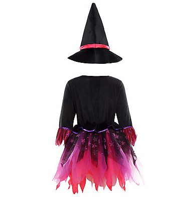 Bauschiger Tüll-Rock mit Sternenprint. Der Hexenhut und ein 'Zauberstab' gehören mit zum Outfit.